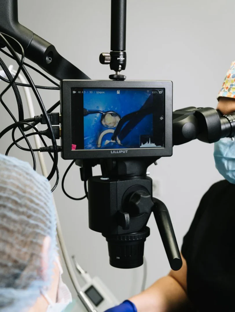 У нашій клініці лікар-ендодонтист проводить первинне лікування та повторне лікування складних кореневих каналів із використанням сучасного дентального мікроскопа.